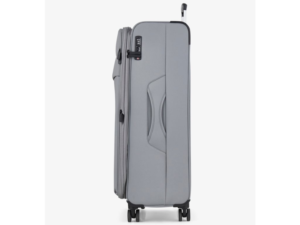 U kufru lze pomocí druhého zipu zvětšit vnitřní objem. V přední části jsou umístěny dvě menší kapsy uzavíratelné zipem. Horní i boční madlo je polstrované v barvě kufru. Celý pojízdný systém je umístěn uvnitř kufru pod textilní podšívkou, aby nedošlo k poškození systému při přepravě, a je opatřen čtyřmi dvojitými kolečky otočnými o 360°. Na vnitřní straně víka je kapsa na zip.