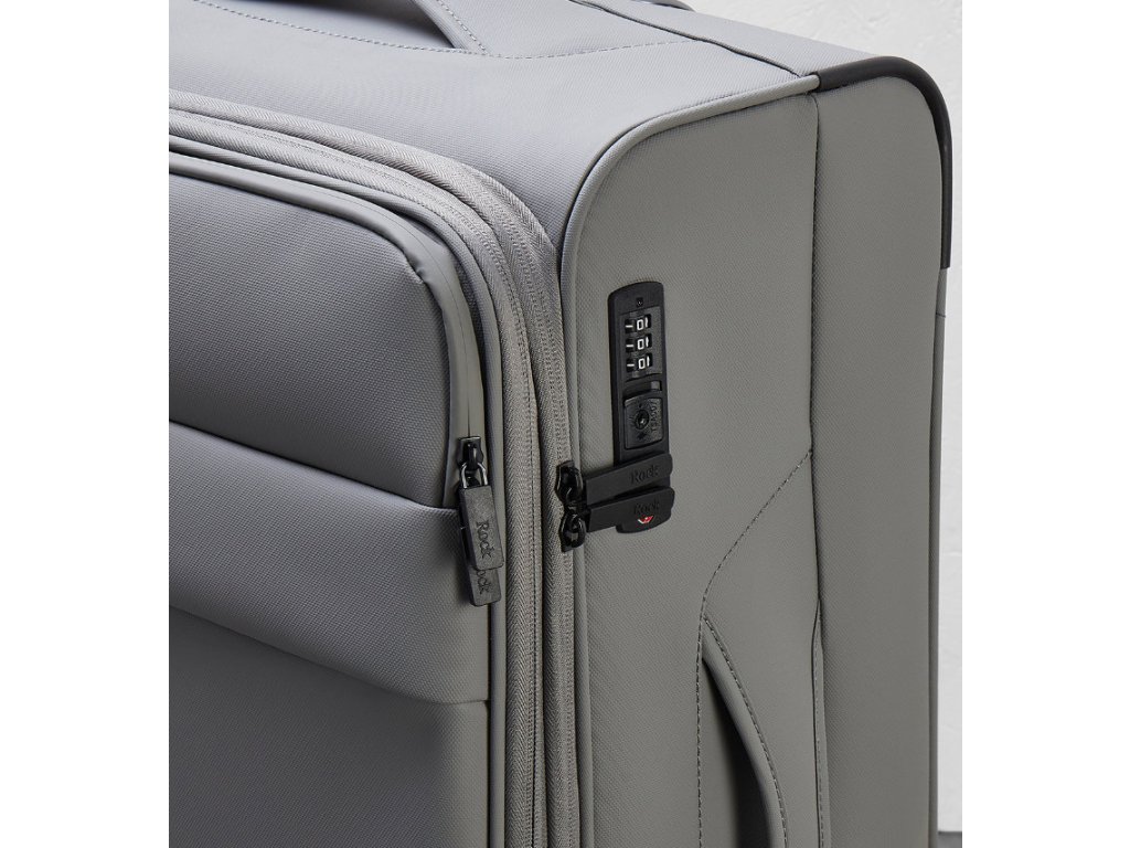 Cestovní kufr z kolekce ROCK Harper. Kufr je uzavíratelný zipem. Oba jezdce zipu mají očko pro pohodlné nasazení kódového nebo klíčového zámku. TSA kódový zámek je součástí kufru. U kufru lze pomocí druhého zipu zvětšit vnitřní objem. V přední části jsou umístěny dvě menší kapsy uzavíratelné zipem.
