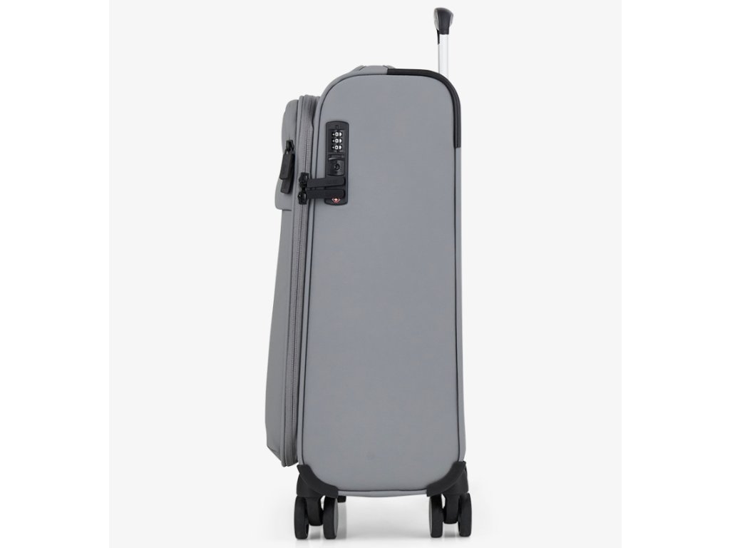 V přední části jsou umístěny dvě menší kapsy uzavíratelné zipem. Horní madlo je polstrované v barvě kufru. Tato velikost kufru nemá boční madlo. Celý pojízdný systém je umístěn uvnitř kufru pod textilní podšívkou, aby nedošlo k poškození systému při přepravě, a je opatřen čtyřmi dvojitými kolečky otočnými o 360°. Na vnitřní straně víka je kapsa na zip.
