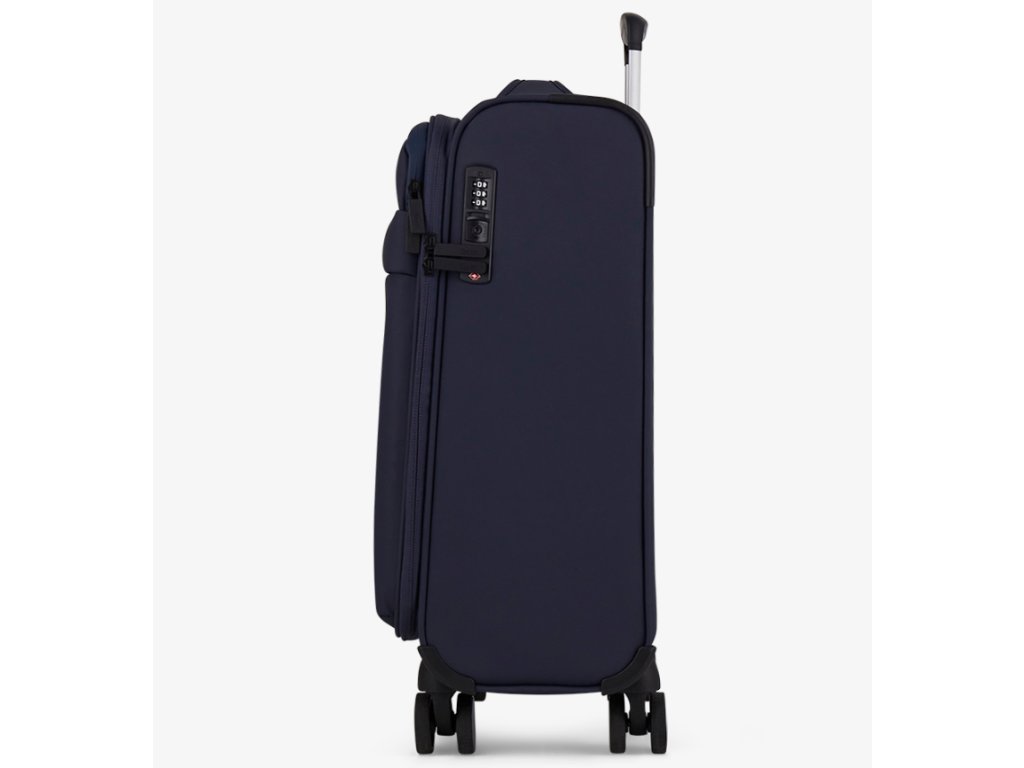 V přední části jsou umístěny dvě menší kapsy uzavíratelné zipem. Horní madlo je polstrované v barvě kufru. Tato velikost kufru nemá boční madlo. Celý pojízdný systém je umístěn uvnitř kufru pod textilní podšívkou, aby nedošlo k poškození systému při přepravě, a je opatřen čtyřmi dvojitými kolečky otočnými o 360°. Na vnitřní straně víka je kapsa na zip.