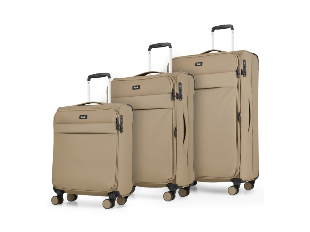 Cestovní kufry z kolekce ROCK Harper. Kufry jsou uzavíratelné zipem, jezdce zipu se dají zapojit do TSA zapuštěného kódového zámku. U kufrů lze pomocí druhého zipu zvětšit vnitřní objem. V přední části kufrů jsou umístěny menší kapsy uzavíratelné zipem.
