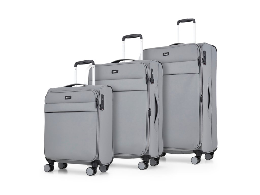 Cestovní kufry z kolekce ROCK Harper. Kufry jsou uzavíratelné zipem, jezdce zipu se dají zapojit do TSA zapuštěného kódového zámku. U kufrů lze pomocí druhého zipu zvětšit vnitřní objem. V přední části kufrů jsou umístěny menší kapsy uzavíratelné zipem.